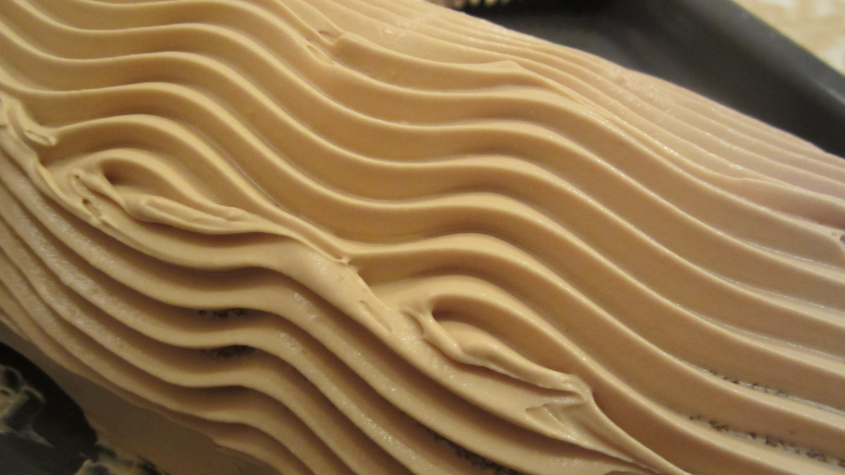 Выровнять кремом верх и бока рулетом.